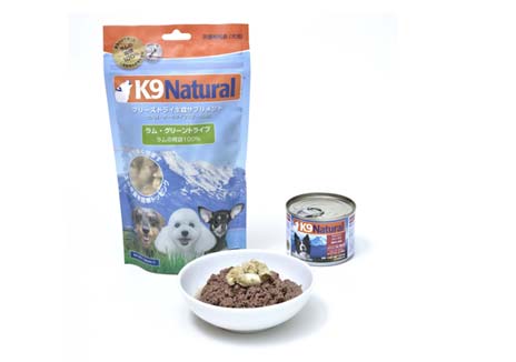 この5〜6年の間で、飛躍的に認知度が上がってきている生食を、どなたでも簡単に始めることができる、生食フリーズドライフードの「K9ナチュラル」。 「K9ナチュラル プレミアム缶フード(総合栄養食)」の登場で、「K9ナチュラル」の製品をさらに手軽に始めていただくことができ、加熱調理されていない「K9ナチュラル 生食フリーズドライフード」へのステップアップにつながる前段階として、また、最高のトッピングとしてもお使いいただけます。