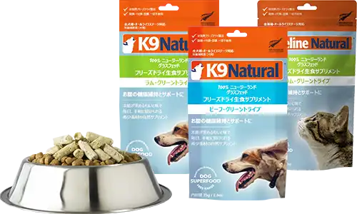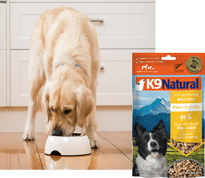 数粒をそのままトッピングしても良いですが、与えたいペットフードをすべて食べさせたい場合は、K9ナチュラルの粒をほぐし、混ぜ込んで与えると良いでしょう。