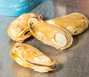 ムール貝やカラス貝と同じ仲間の、イガイ科の2枚貝「グリーン・マッスル(和名:緑イ貝)」。