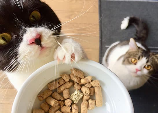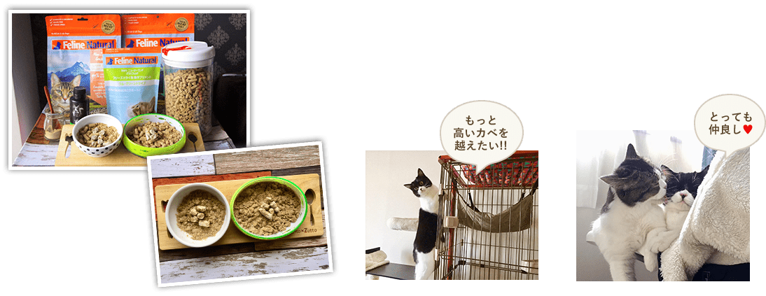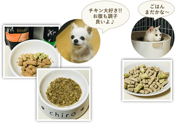 チロは毛が抜けてしまっていて、カボは元々手が不自由なので良いフードを与えたい。